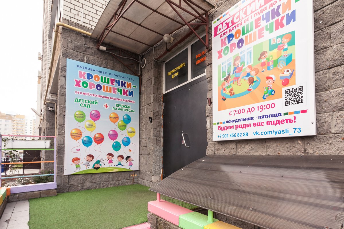 Так много хочется сказать, что даже не знаю с чего начать. И если в двух словах, то детский сад Крошечки-хорошечки, просто потрясающий с действительно профессиональным коллективом, с нашими любимыми добрыми и отзывчивыми воспитательнцами , которые стали нам как родные, а моему ребёнку первыми наставниками и педагогоми. Привожу утром ребёнка, или забираю его вечером, всегда встречаю необыкновенно доброжелательную и позитивную атмосферу. Все дети всегда улыбаются, смеются и видно, что они счастливы. И несколько слов об участке и самом здании. Очень красиво и очень чисто! Настоящий волшебный детский мир!